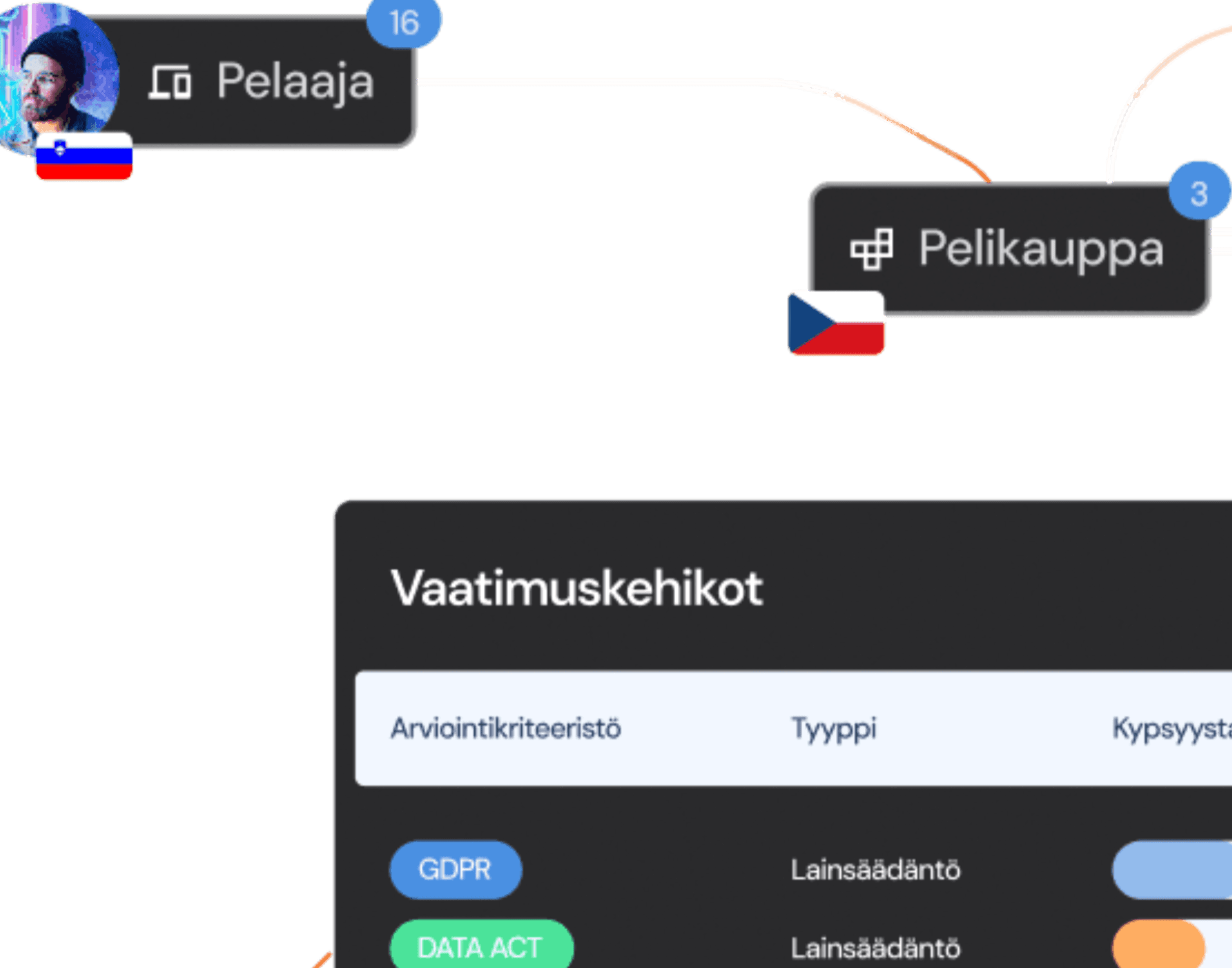 PrivacyDesigner auttaa hallitsemaan datasääntelyn eri vaatimuksia yhdellä työkalulla. Valitse tarpeisiinne parhaiten sopivat vaatimuskehikot ja etene kohti compliance-tavoitteitanne hallitusti.